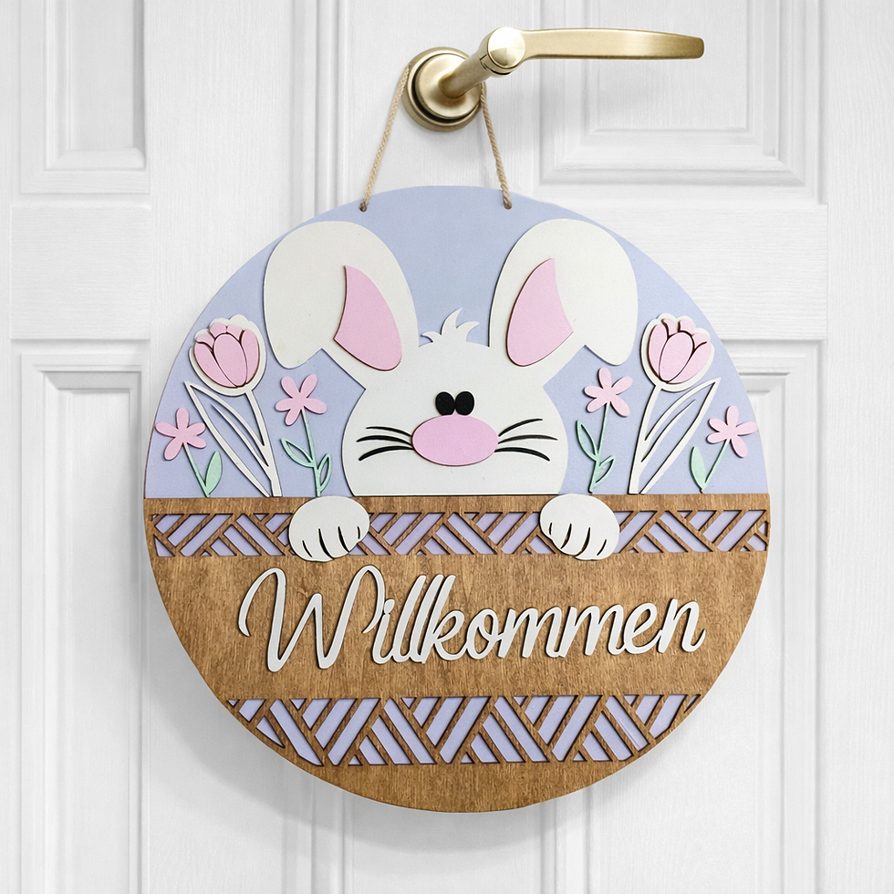 PersonalisiertesWillkommensschild mit Hase – 3D Holz Türschild